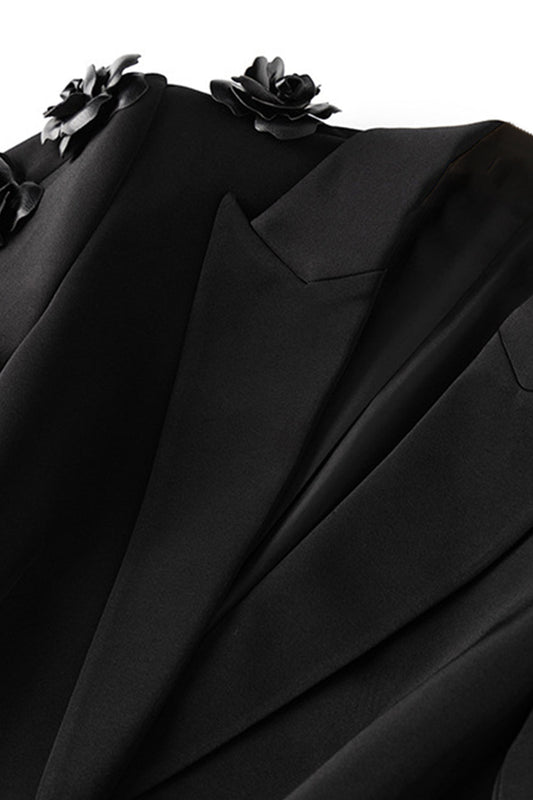 3D Floral Blazer Suit Set | Black | Tailored Fit | Formal Wear | Polyester