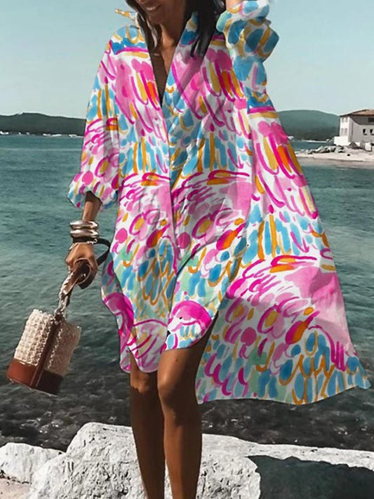 Abstract Heart Print Midi Dress | Long Sleeve Oversized Fit | Artistic Casual Statement Look