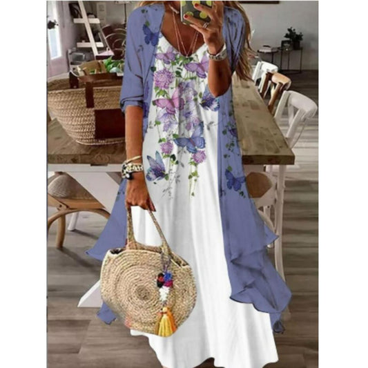 2-Piece Lace Maxi Dress Set | Floral Embroidered Dress & Drape Cardigan | Elegant Summer Layered Look