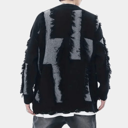Abstract Distressed Knit Sweater | Oversized Fit | Soft Acrylic Blend | Edgy Streetwear