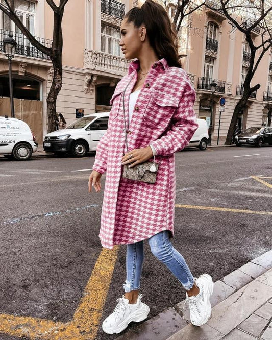 Classic Houndstooth Coat | Timeless Pattern | Wool Blend | Everyday Elegance
