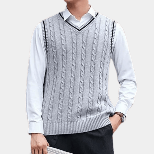 Classic Cable Knit Sweater Vest | V-Neck Design | Soft Acrylic Blend | Office & Casual Layering