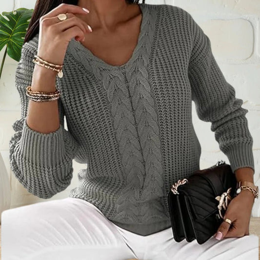 Classic Cable-Knit Sweater | V-Neck Design | Soft Acrylic Blend | Timeless Style