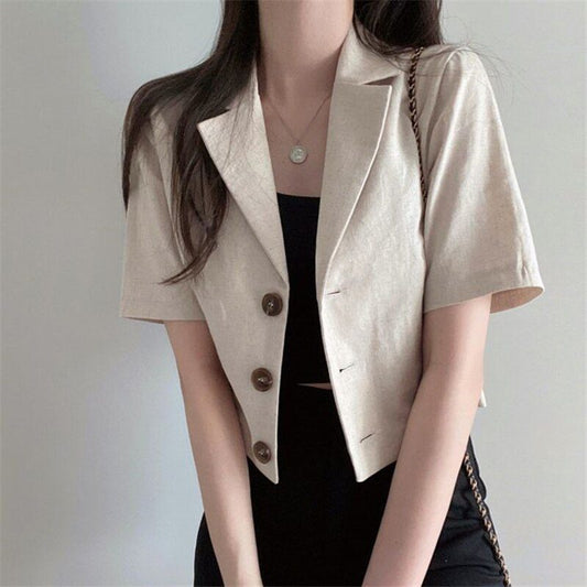 Cropped Blazer with Short Sleeves | Lightweight Linen Blend | Summer Chic | Casual Layering