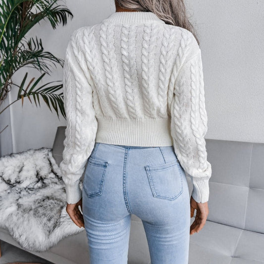Cropped Cable-Knit Sweater | Crew Neck | Soft and Stylish