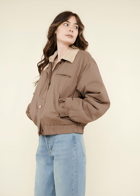 Cropped Bomber Jacket | Casual Comfort | Corduroy Collar | Everyday Essential
