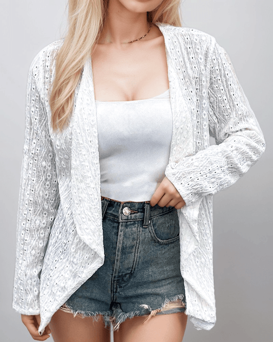 Delicate Eyelet Cardigan | white | Lightweight Polyester | Relaxed Fit