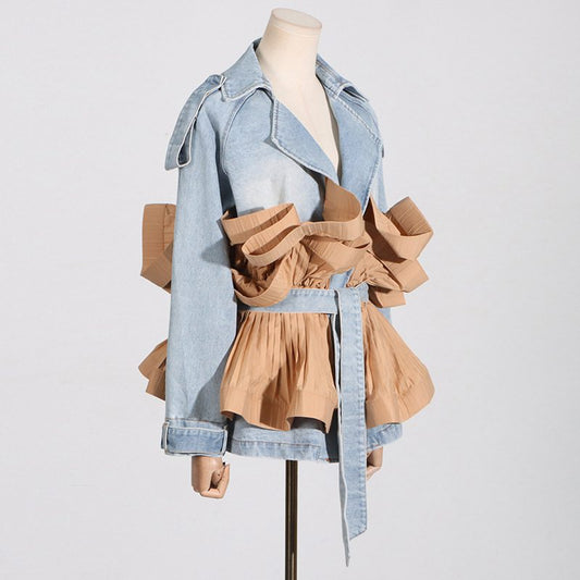 Denim Trench Jacket | Statement Bow Detailing | Cotton Blend | Fashion-Forward Outerwear