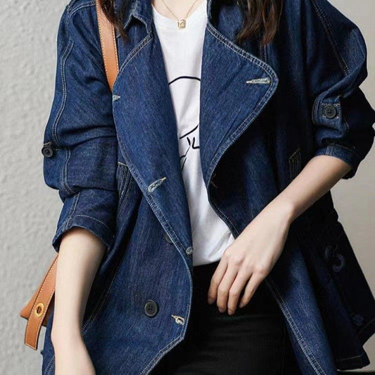 Denim Trench Jacket | Relaxed Fit | Double-Breasted Style | Casual Outerwear