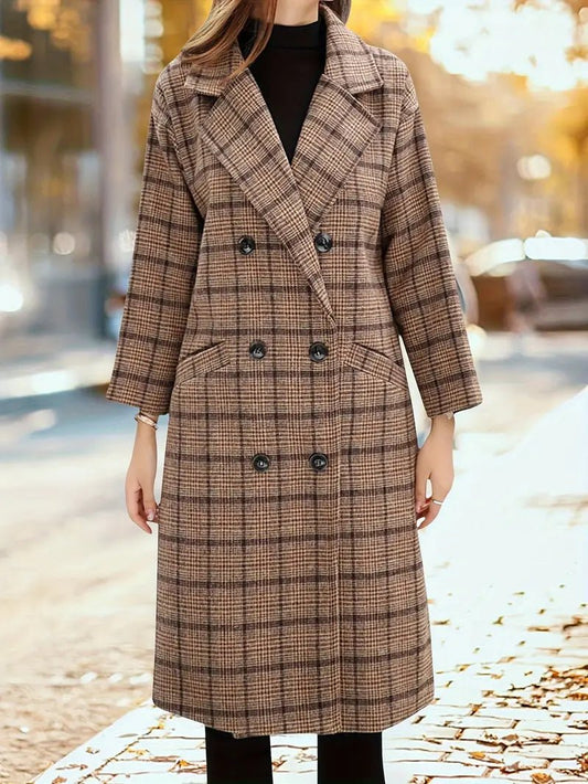 Double-Breasted Plaid Coat | Wool Blend | Timeless Elegance