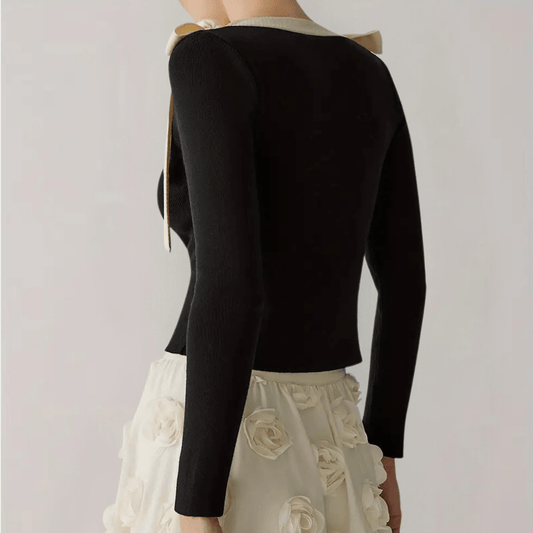 Elegant Bow-Shoulder Knit Top | Chic Contrast Trim | Soft Stretch Fabric | Feminine Style