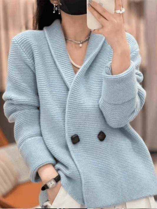 Elegant Double-Breasted Knit Blazer | Chic & Warm | Soft Wool Blend | Versatile Layer