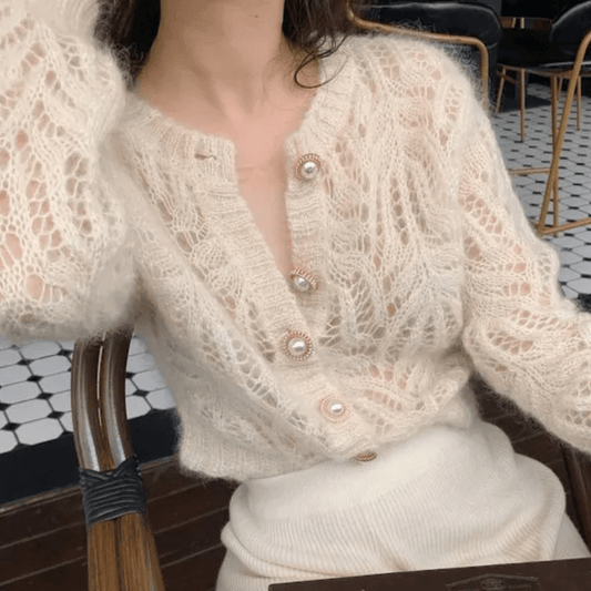 Elegant Fuzzy Knit Cardigan | Pearl Button Detail | Soft & Cozy | Chic Layering