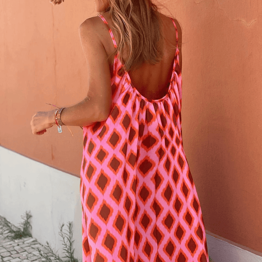 Boho Maxi Sundress | Strappy & Flowy | Geometric Print | Summer Ready