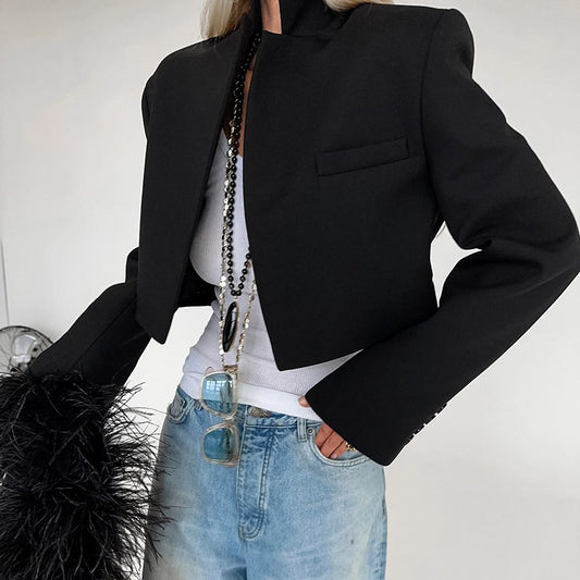 Women's Cropped Black Blazer | Minimalist & Chic | Open-Front | Modern Office & Casual Wear