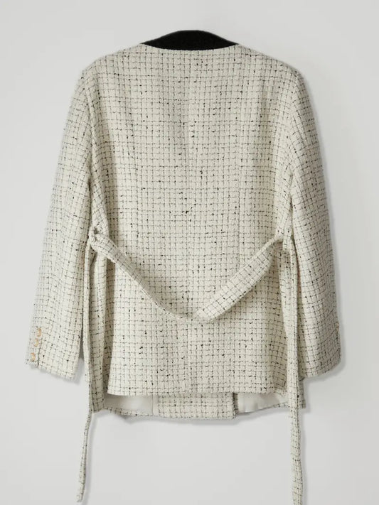 Tweed Belted Blazer | Contrast Design | Vintage-Inspired Elegance