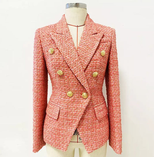 Tweed Double-Breasted Blazer | Gold Button Accents | Tailored Fit | Sophisticated Style