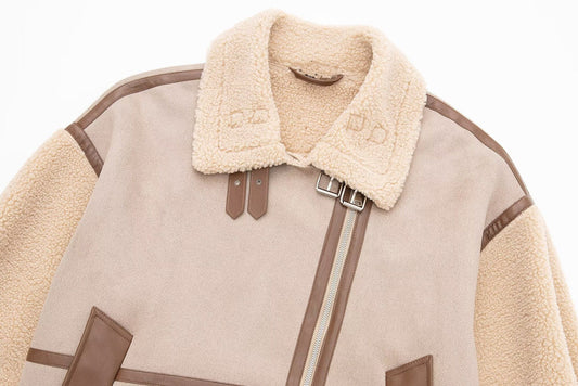 Oversized Shearling Aviator Jacket | PU Leather Trim | Asymmetrical Zip | Cold-Weather Essential