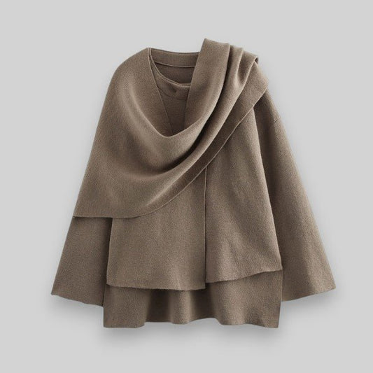 Women's Asymmetrical Knit Poncho | Elegant Layering Piece | Soft Wool Blend | Cozy Chic