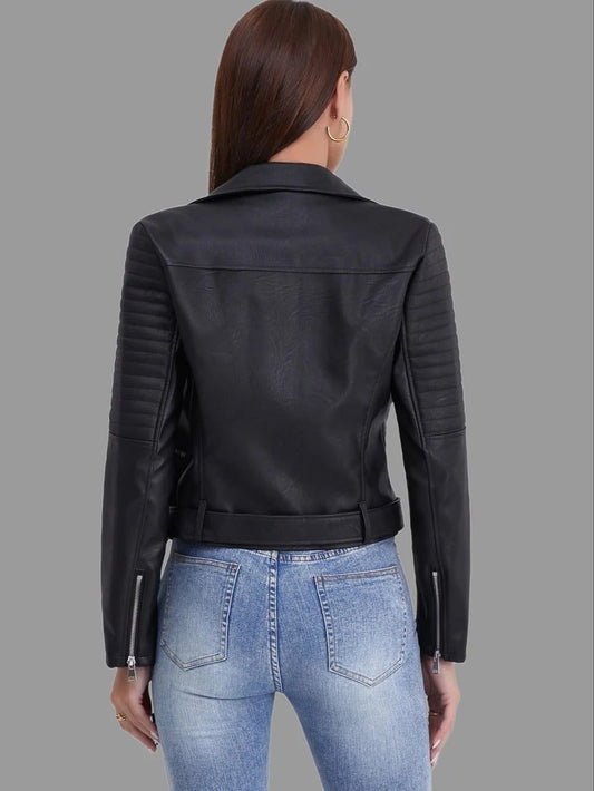 Women's Biker Jacket | Classic Black PU Leather | Asymmetrical Zipper | Edgy Streetwear
