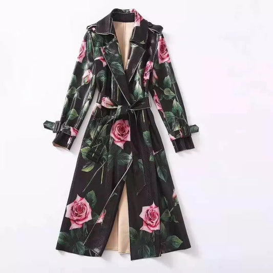 Floral Print Longline Trench Coat | Belted Waist | Statement Outerwear | Elegant Design