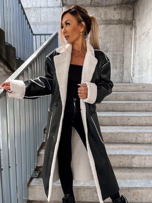 Two-Tone Faux Leather Trench Coat | Statement Outerwear | Belted Design | Modern Chic