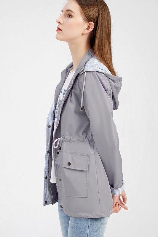 Lightweight Hooded Rain Jacket | Adjustable Waist | Water-Resistant | Casual Outerwear