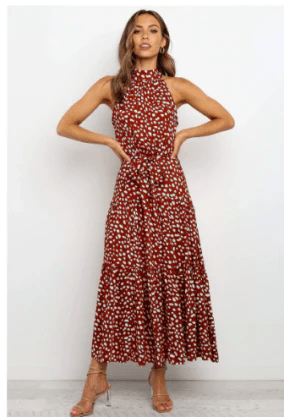 Halter Neck Floral Maxi Dress | Tiered Skirt | Sleeveless Design