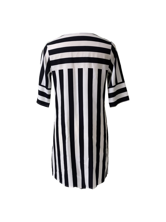 Striped Shift Dress | V-Neck Detail | Relaxed Knee-Length Cut