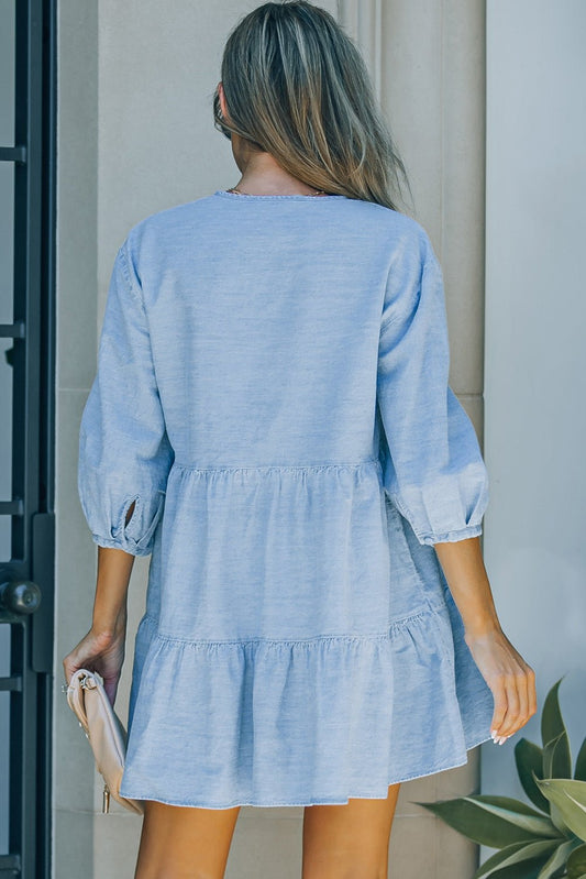 Light Blue Tiered Mini Dress | Relaxed Fit | Casual Everyday Style