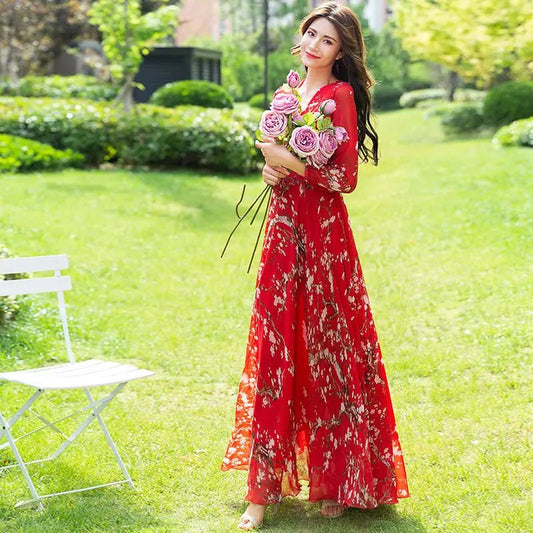 Romantic Maxi Dress | Floral Elegance | Lightweight Chiffon | Garden Party Ready