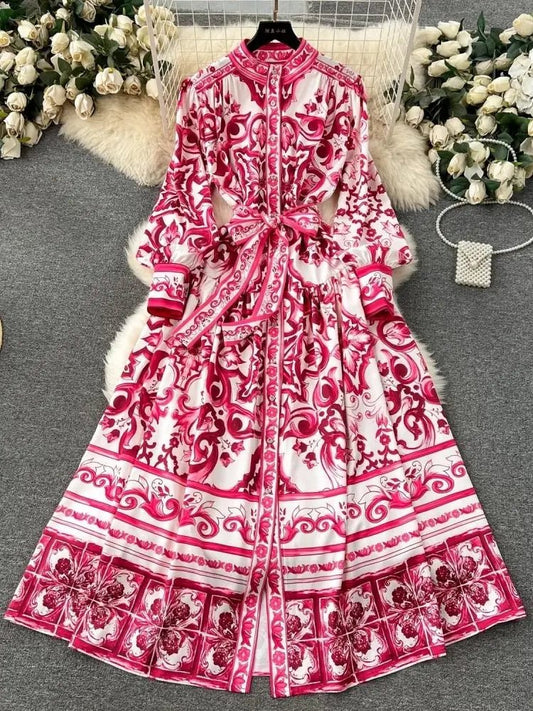 Vintage-Inspired Maxi Dress | Ornate Baroque Print | Lightweight Fabric | Statement Style