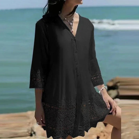 Lace-Trim Tunic | Relaxed Fit | Lightweight Fabric | Beach-Ready Style