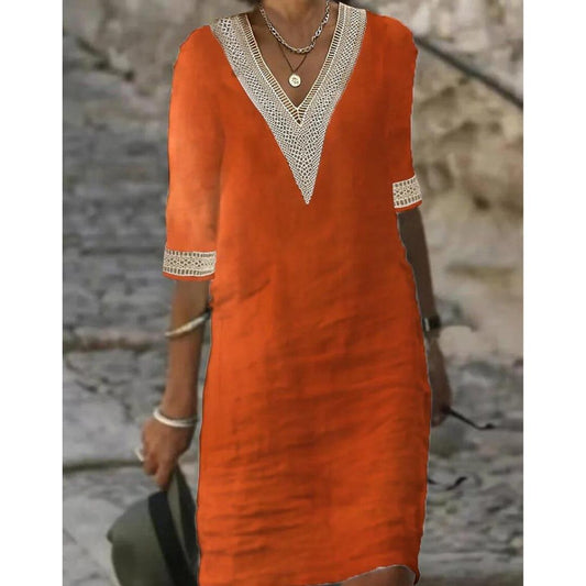V-Neck Linen Midi Dress | Relaxed Fit | Side Slit Detail