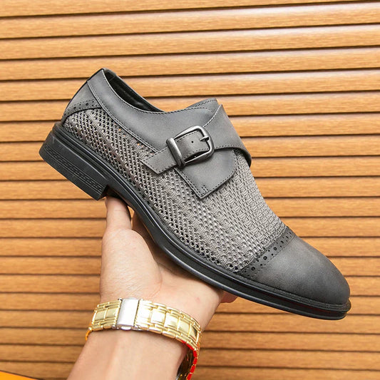 Men’s Monk Strap Dress Shoes | Textured Weave Leather Slip-On Formal Footwear