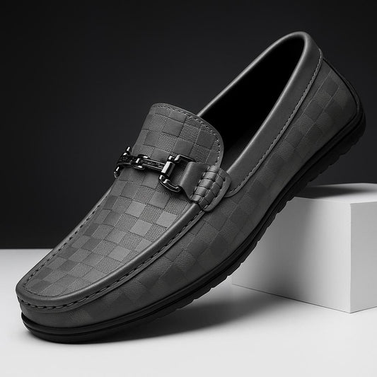 Embossed Leather Loafers | Slip-On Dress Shoes with Metal Accent