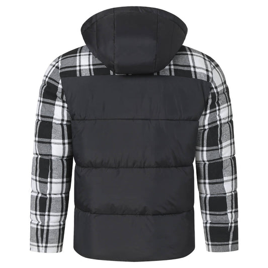 Men’s Hooded Shirt Jacket | Puffer Vest Front & Flannel Sleeves | Layered Hybrid