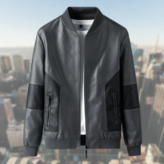 Men’s Faux Leather Bomber Jacket | Contrast Panel Design | Lightweight Streetwear Layer