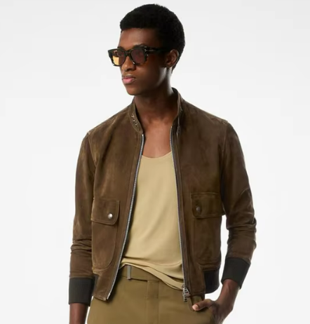Suede Bomber Jacket | Ribbed Trim & Dual-Button Chest Pockets