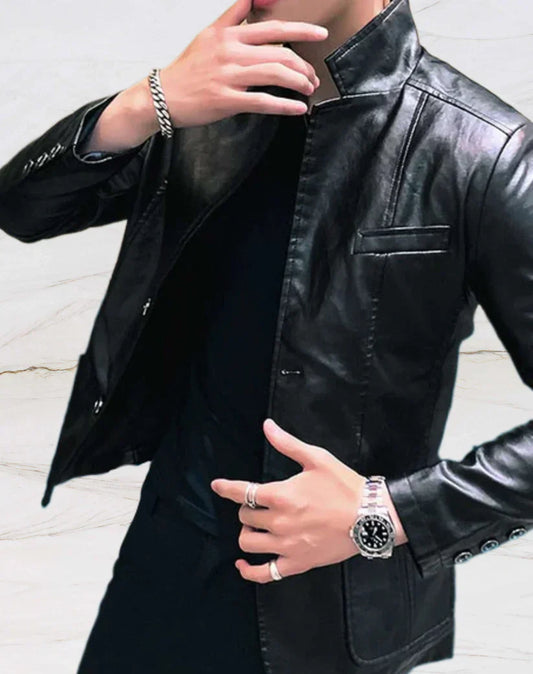 Men's Faux Leather Blazer Jacket | Sleek Streetwear Layer | Lightweight Moto Fit