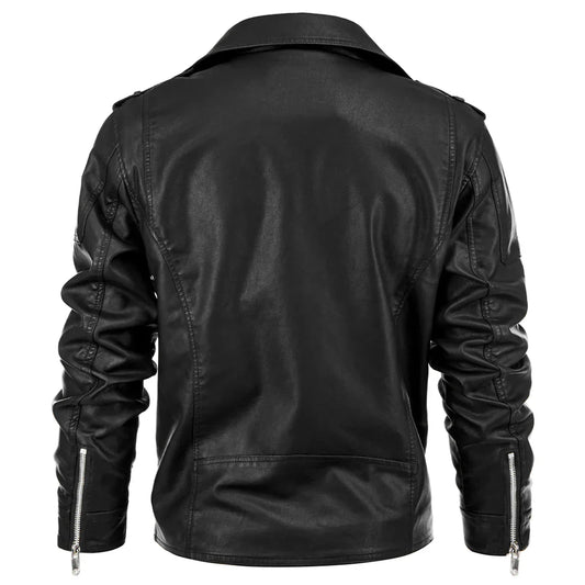Men’s Faux Leather Biker Jacket | Classic Moto Style | Zip Details & Belted Hem
