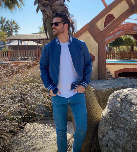 Men’s Lightweight Varsity Bomber Jacket | Striped Ribbed Trim | Casual Spring Layer