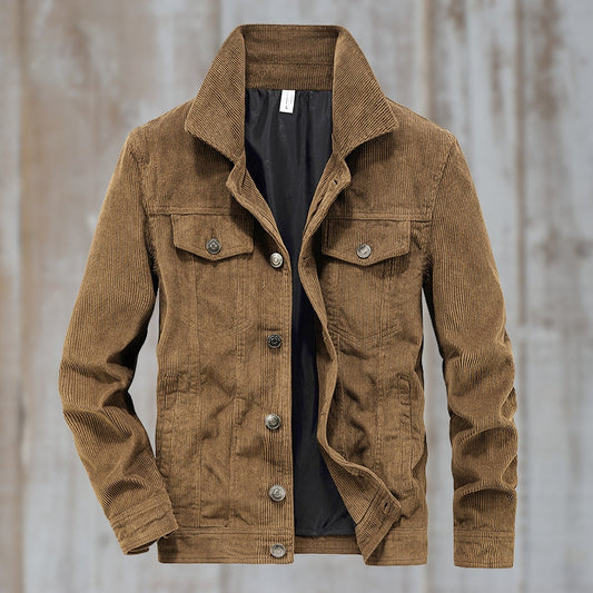 Men’s Corduroy Trucker Jacket | Button-Up with Flap Pockets | Midweight Fall Layer
