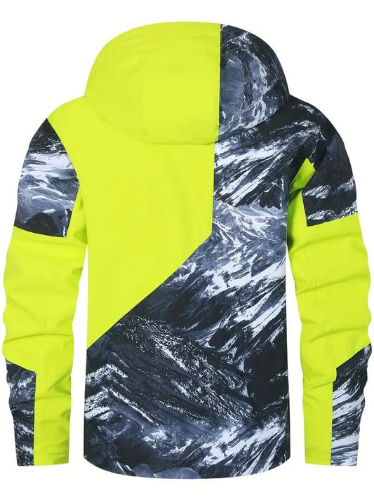 Men's High-Visibility Waterproof Jacket | Bold Graphic Design | Windproof & Lightweight | Outdoor Adventure
