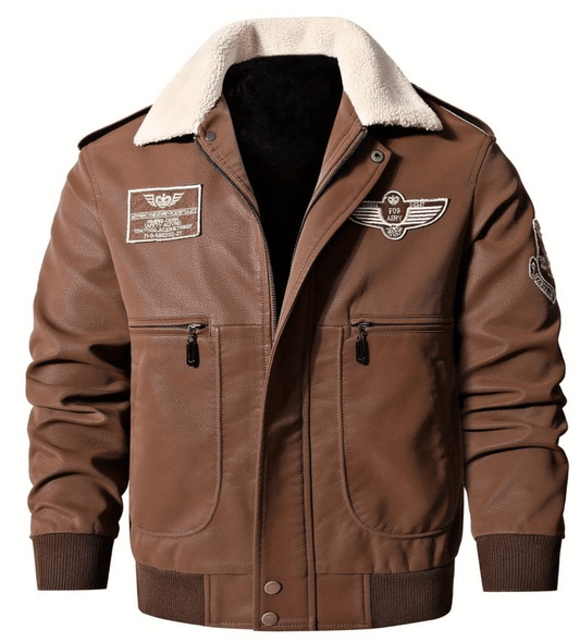 Men's Aviator Jacket | Embroidered Patches | Faux Shearling Collar | Vintage Flight Style