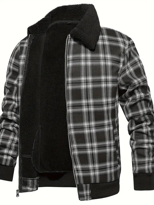 Men's Plaid Bomber Jacket | Sherpa Collar | Warm Lined | Casual Fall Style
