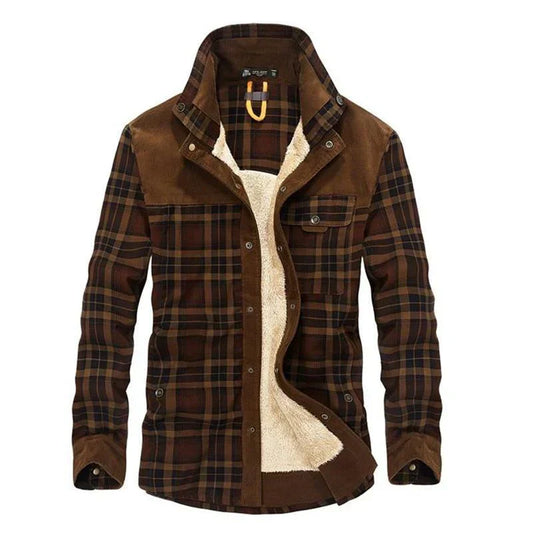 Men’s Sherpa-Lined Flannel Jacket | Corduroy Yoke & Plaid Outer | Fall Layering Shirt Jacket