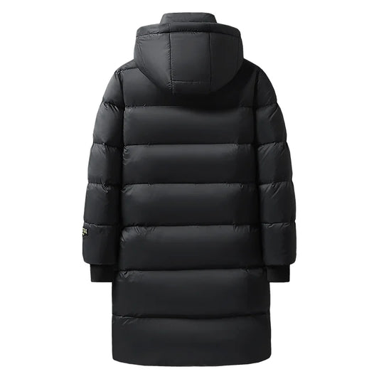 Men’s Long Down Puffer Coat | Full-Length Insulated Winter Parka | Windproof Hooded Outerwear