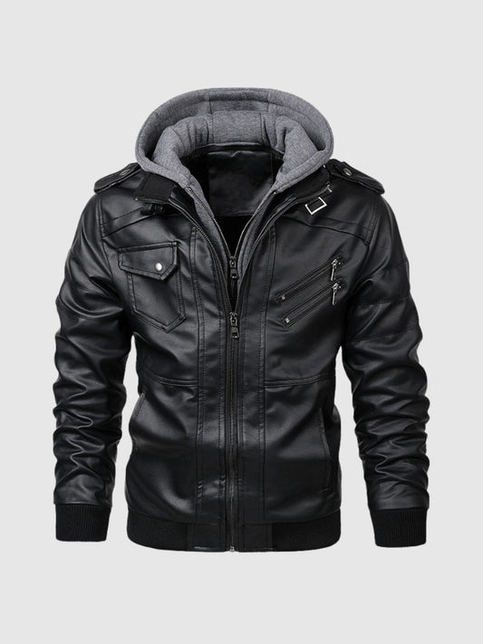 Men’s Faux Leather Jacket | Hooded Bomber Style | Lined for Cold Weather