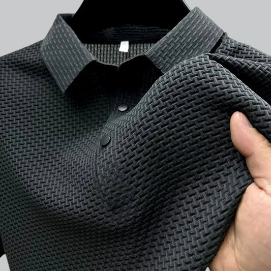 Men’s Textured Knit Polo Shirt | Breathable Stretch Fabric | Smart-Casual Essential